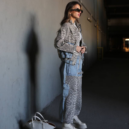 Leopard Patchwork Denim Suit – Must-Have for Spring 2025