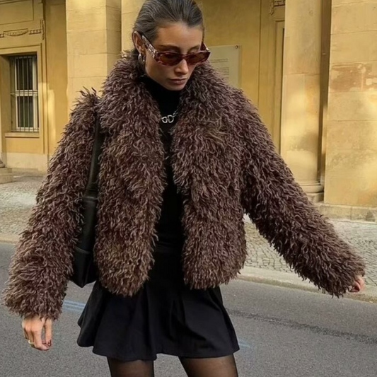 Elegant Dark Brown Faux Fur Coat – Timeless Warmth & Style